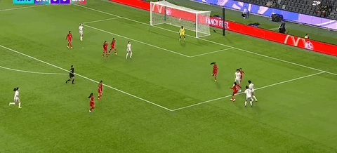 第33分钟,王霜再次送出直塞,金坤小角度射门被门将没收。