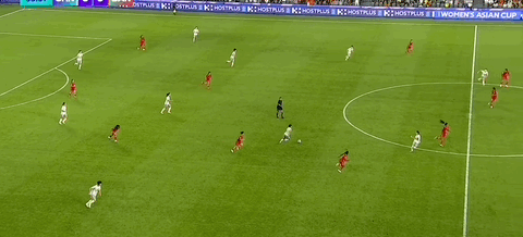 第18分钟,王爱芳送出过顶长传,王霜单刀调整过多被解围。